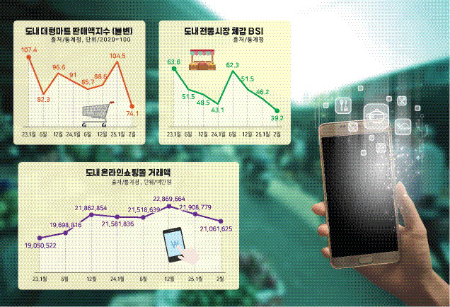 반면, 온라인쇼핑은 매출액 급증을 통해 명백한 우위를 점하고 있다. 2024년 하반기 이후에도 월 거래액 20조 원 이상을 꾸준히 기록하며 오프라인 유통을 압도하고 있다. 평소 대형마트를 이용하는 고객들이 의무 휴업일에 전통시장이 아닌 온라인몰과 슈퍼마켓으로 발걸음을 돌린다고 해석할 수 있는 대목이다.